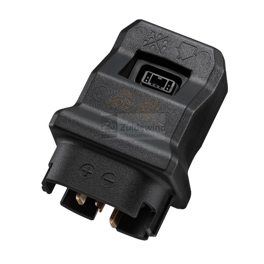 Het is aan te raden je fietsaccu bij kamertemperatuur op te laden; als de fiets bijvoorbeeld in een onverwarmde schuur staat, is het dus verstandig de accu buiten de fiets te laden. Hiervoor is bij de betreffende Shimano accu’s dus deze adapter nodig.
